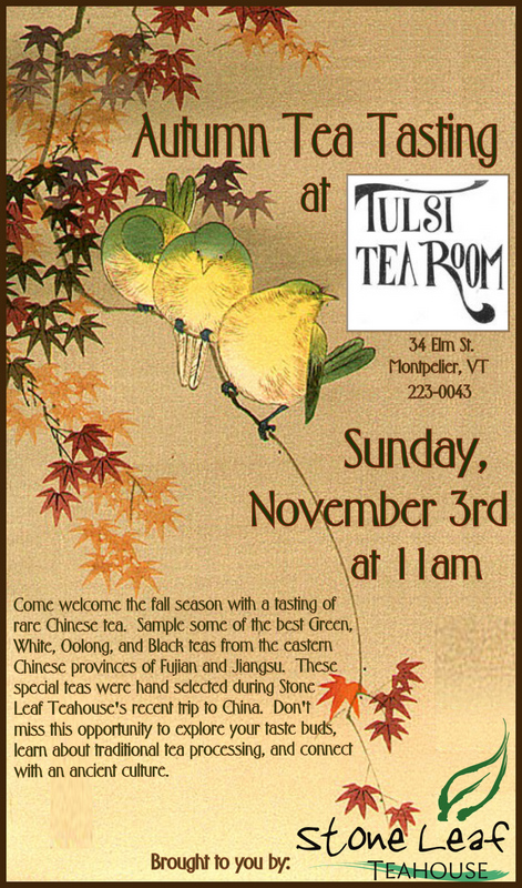 We’ll be leading a tasting of some of our favorite teas from our recent trip to China at Tulsi Tearoom in Montpelier on Sunday, November 3rd at 11am. Hope to see you there!